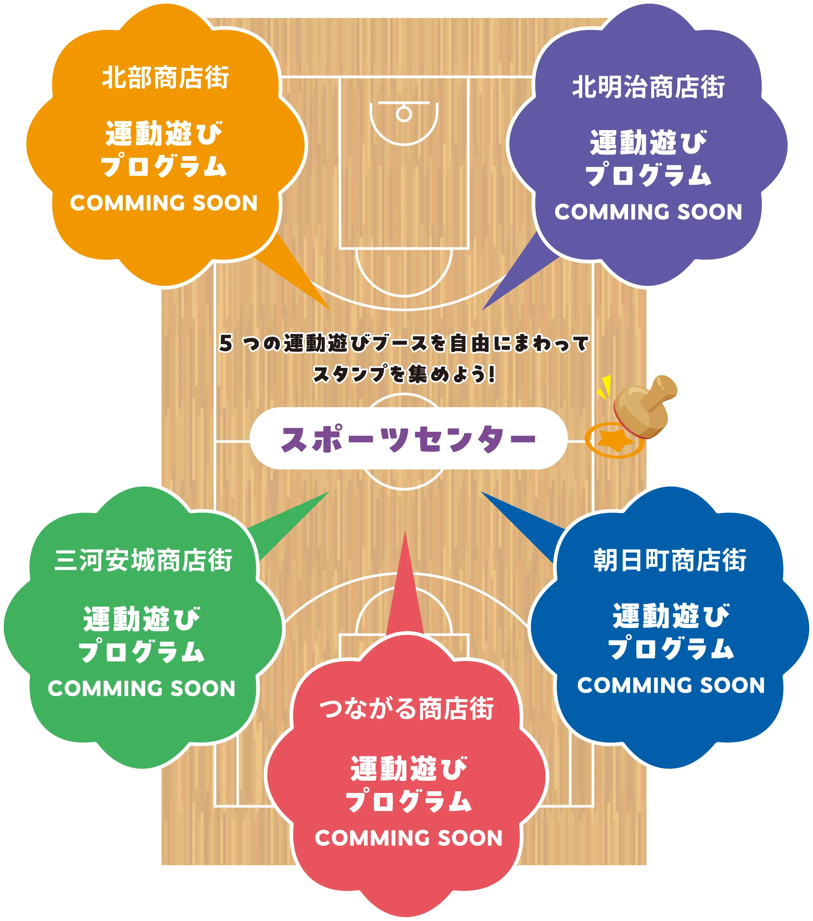5つ全部集めたら、商店街で使えるクーポン券が